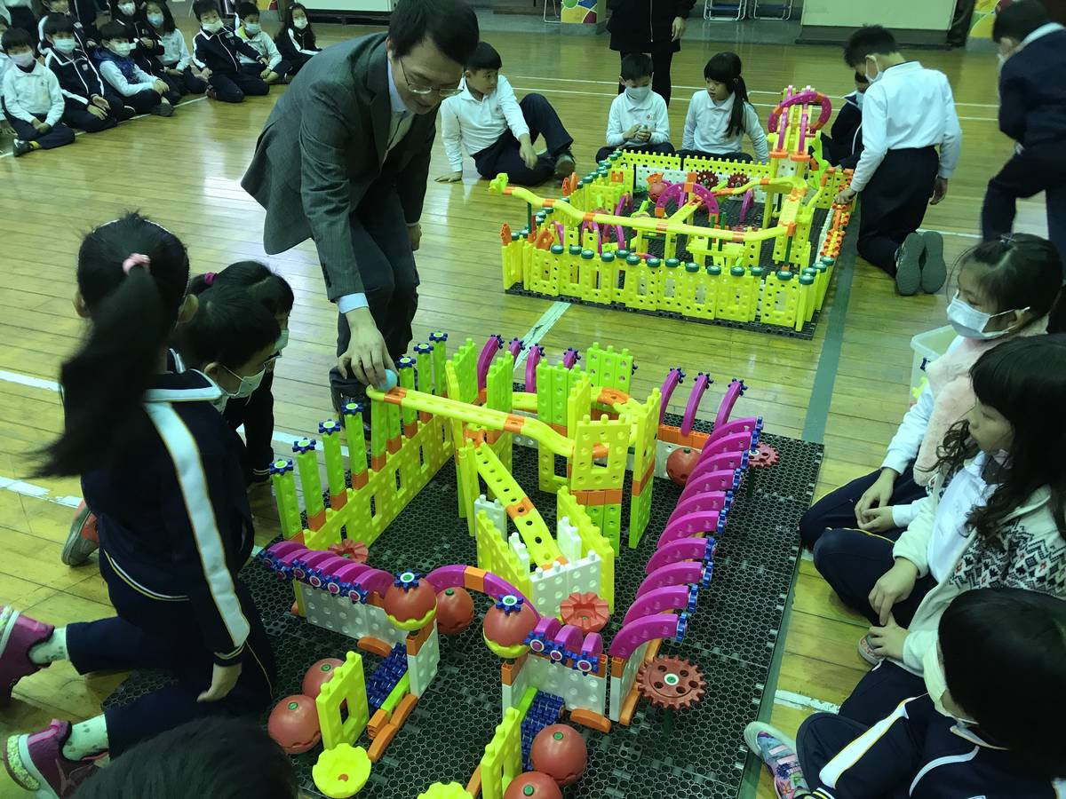 臺中市光復國小在學期末最後幾天上課日,全校還是熱鬧滾滾,因為一年一度最受學生歡迎的科學積木競賽開始進行班際競賽。經過一學期的科學積木課程學習,各班級大展身手一較高下。