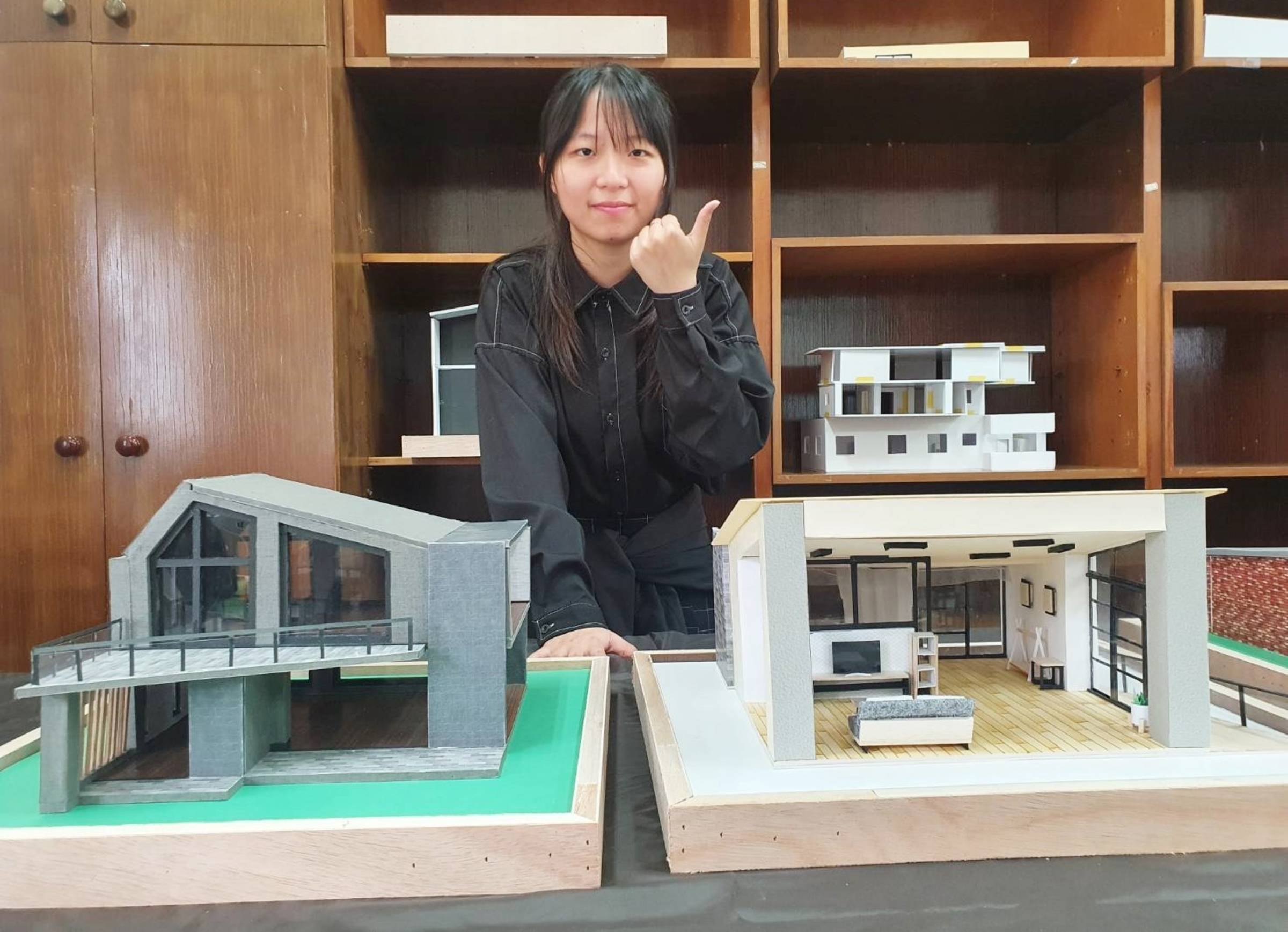 指導老師之一的陳家敏表示,本屆畢業班專題製作課程,集結一至三年級班導師傾力指導,引導畢業生將蓄積3年所學的知識與技能,應用於個人創作的空間設計新提案中,也藉由發表會讓學生們互相檢驗、調整,同時訓練口條、儀態,為接下來要面臨的推甄面試預作準備。