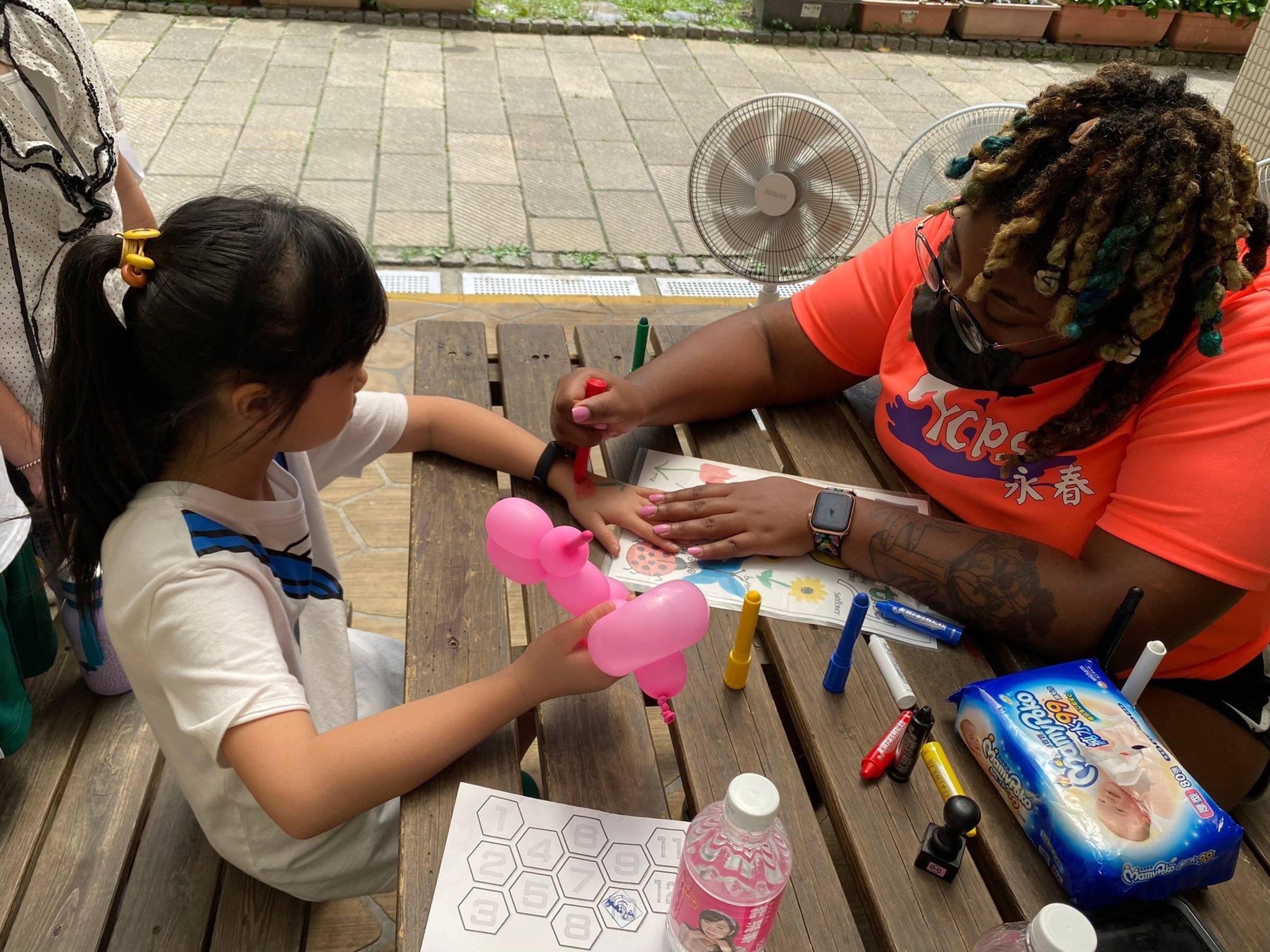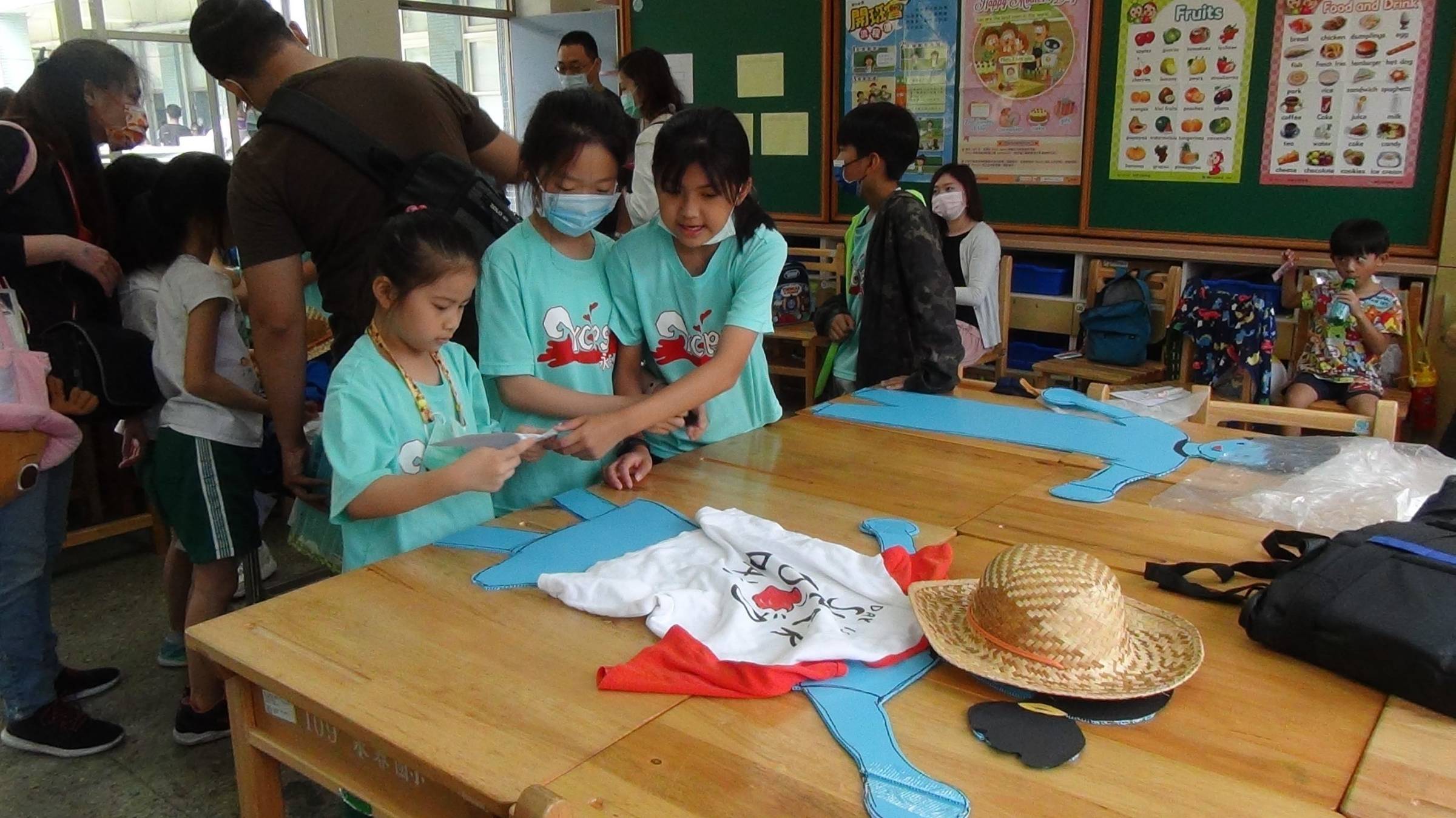 四到六年級則是將校定課程的多元評量融入在遊戲中,透過闖關的過程展現學習成果。活動是由老師引導學生發想、進行資料蒐集與分類,團隊合作一起完成闖關所需素材,並由同學擔任關主,親自解說遊戲規則。四年級的「慈祐宮翻翻樂」,透過照片及遊戲介紹慈祐宮的歷史與建築;五年級的「穿搭我最行」,結合微夢想旅行進行跨域統整,以畢業典禮、騎單車以及海灘做為虛擬情境,學生需判斷選出適合該場域的服裝;六年級的「植物辨辨辨」,以校園常見植物為學習素材,請學生為樹葉分類(如:顏色、大小、味道等),類別越多越好。還有一關是「Face Painting」,由外師Tiffany在現場進行彩繪創作,學生可以選擇要彩繪的圖案,並用英語和外師互動,深具學習意義。