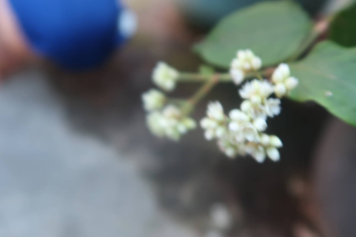 韓尹宸小朋友要介紹客語中的「大號烏蠅翼」就是「火炭母草」,白白的葉子,像米飯,還有黑黑果子可以吃,葉子像卵一樣圓圓的。