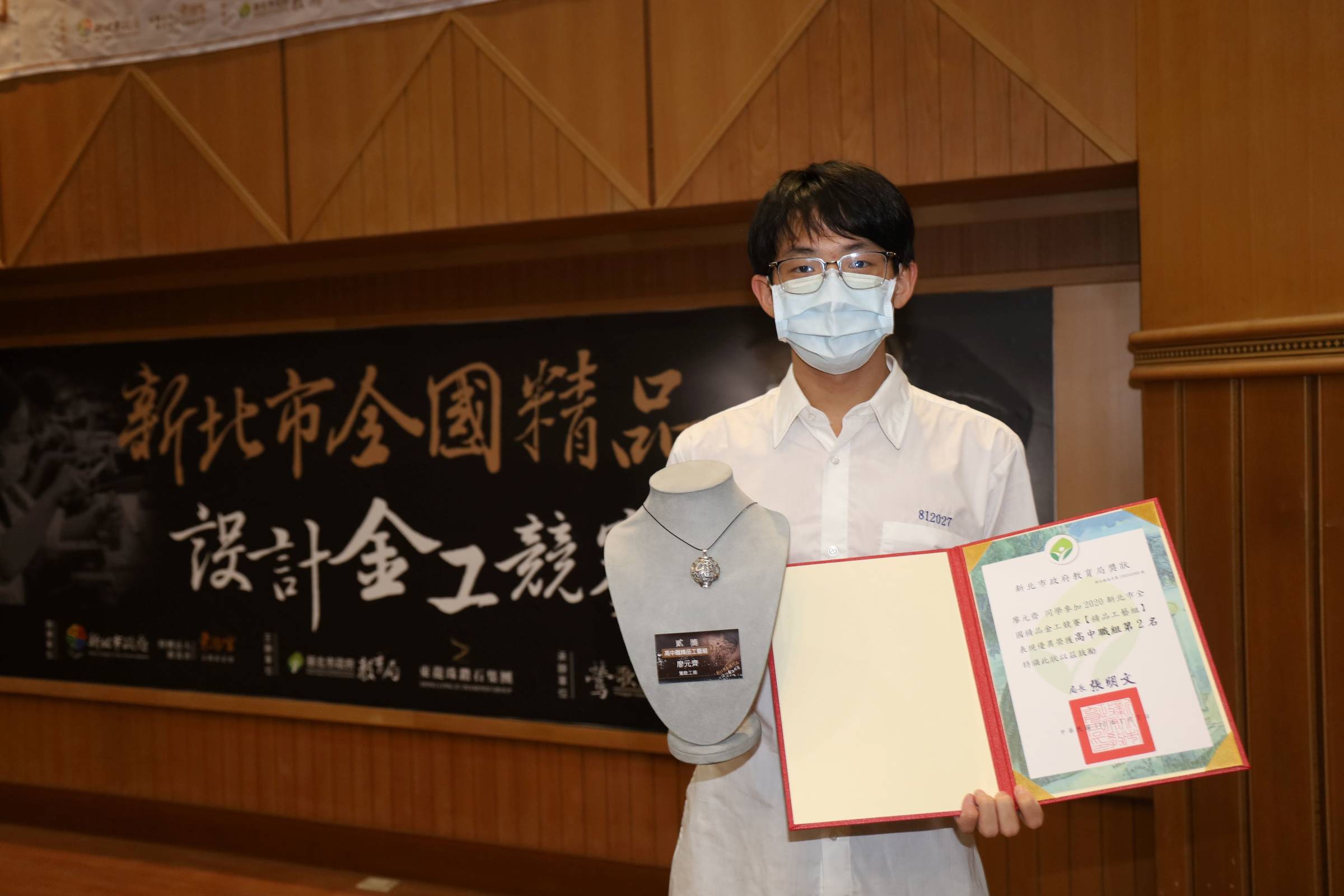 而獲得精品工藝高中職組第二名的鶯歌工商廖元齊表示,上高職前找不到興趣,父母也很著急,四處帶著自己去學很多東西,像是音樂、美術等等,後來接觸到了金工這項技藝,不過一開始沒有到很大的興趣,但後來進到鶯歌工商,發現自己完成作品都有滿滿的成就感,因此就將金工師當成自己的人生目標。但是剛接觸的過程中對焊接完全抓不到訣竅,焊了3個小時才焊好一個指頭大小的作品,如今焊接已經成為了自己拿手的技巧,未來想要開一個工作室,教國中生或小朋友去學金工!