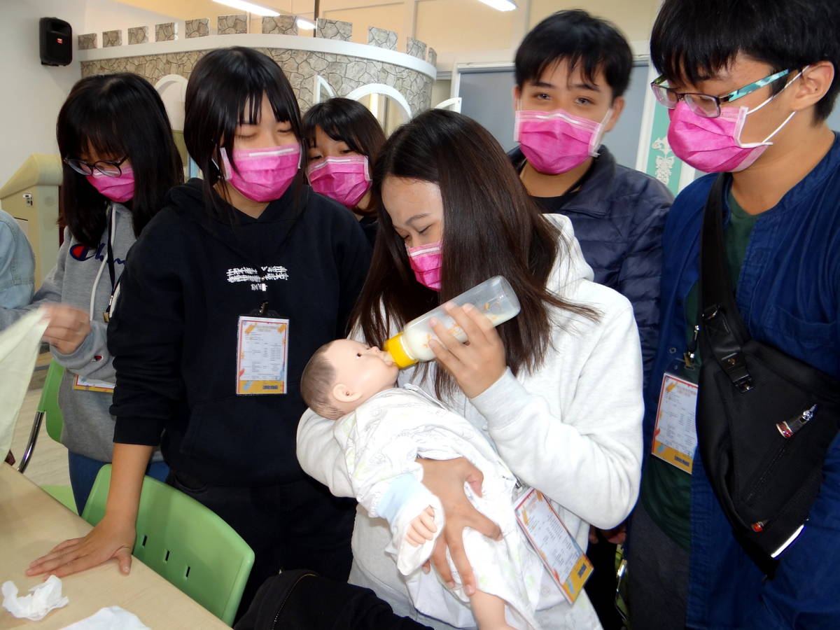 正修幼保系冬令營 帶學員換尿布、餵奶、說故事