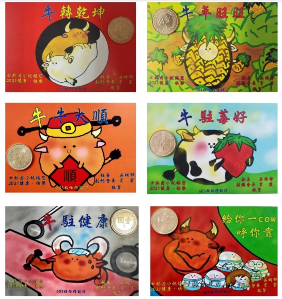碧湖國小洋溢著濃濃的春節歡慶氣氛,以高牆上的喜氣爆竹和鞭炮聲迎接同學。士林國小規劃了「牛轉乾坤‧給您COW」迎新春開學活動,校長將在校門口一一發送由學生設計的祝福卡片,與全體親師生一同歡喜迎接新學期的到來。文湖國小「金牛報喜、友善校園」開學日活動,將由校長發給每位小朋友一張牛年祝福書籤,讓小朋友可以寫下新年願望,勉勵自我在新的一年更加精進。
