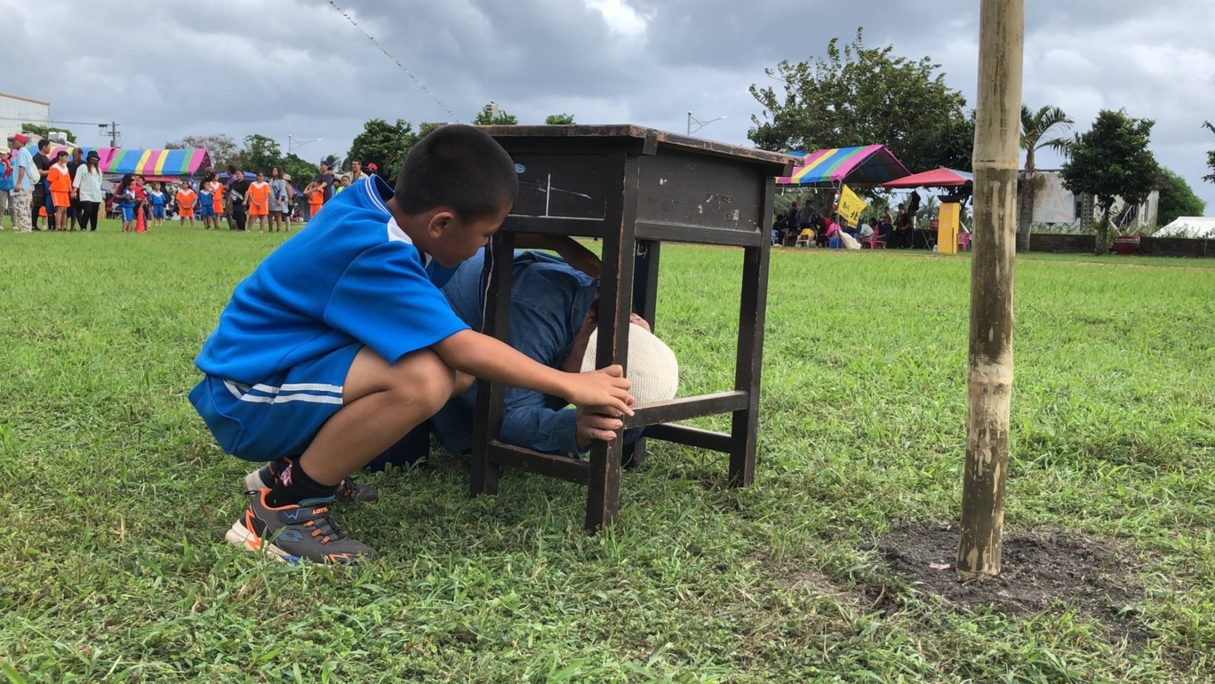 此外,去年里校聯合運動會的趣味競賽中,學校也特別將部落階級任務與防災觀念相結合,如「負重接力」,模擬當道路毀損,救災資源進入困難時,部落青壯年階級就必須擔負資源運送的重責。