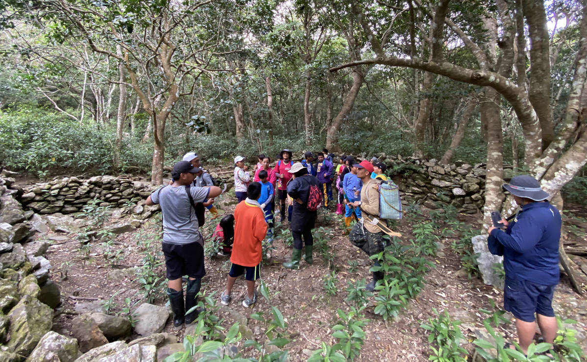 到達舊部落,學生開始上起戶外歷史課,頭目長輩化身成老師輪流講述,讓學生對於自己部落的家族有更深一層認識。