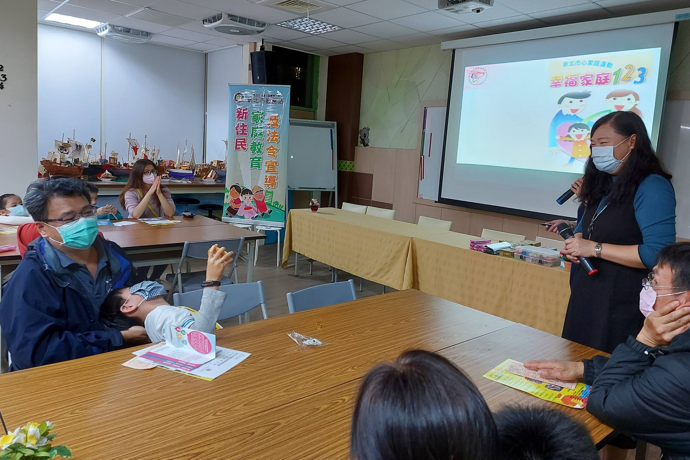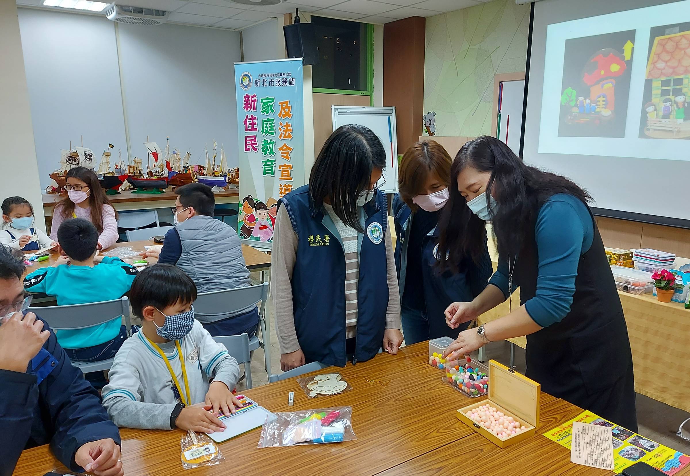 新北市政府家庭教育中心日前為新住民家庭開設「新手相連,新住民親職講座」,吸引不同國籍約20組新住民家庭參加,講師用有趣的桌遊、繪本、親子共同手作,透過精心設計的活動,讓參與者大聲說出對家人的愛,整場活動輕鬆有趣、笑聲不斷,讓新住民家庭共同體驗一段親子幸福好時光,促進對經營幸福家庭的認同。