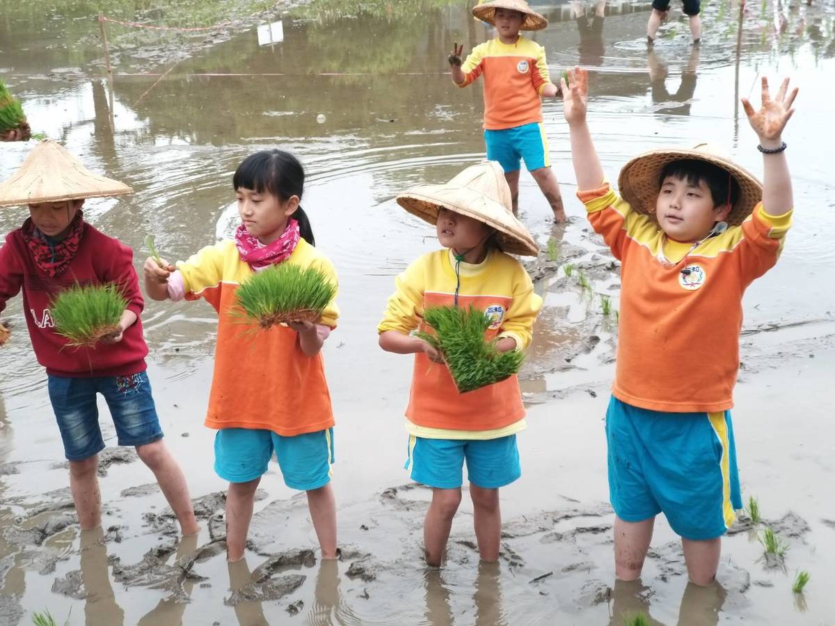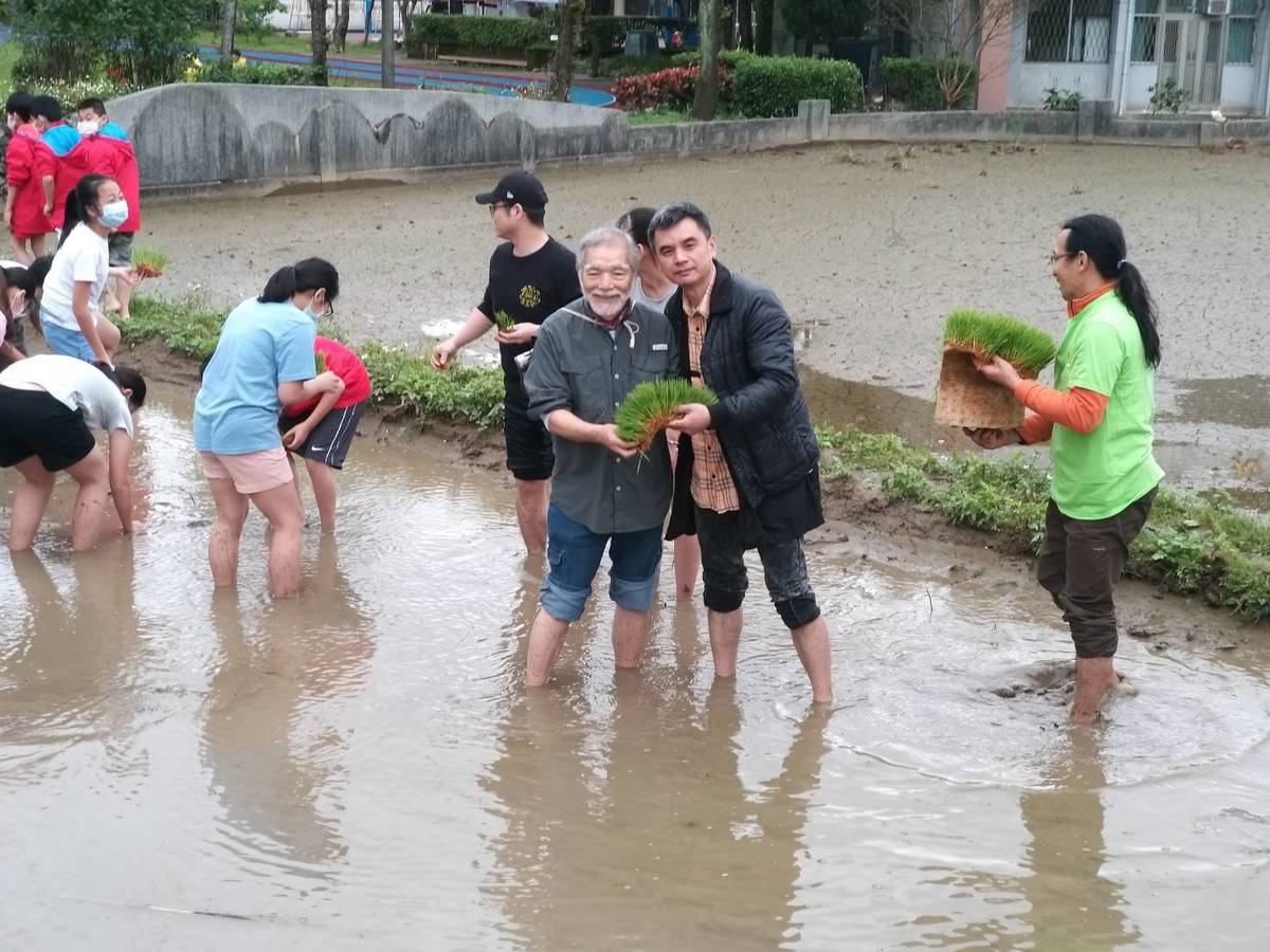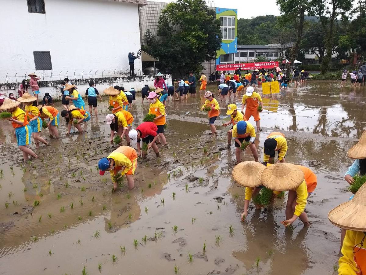 新北市農業局輔導的彩田友善農作今(23)天在金山區舉辦「玩金山樂插秧」食農教育體驗插秧活動,由耆老示範插秧方法,帶領附近的國小學童們下田插秧體驗,用自己的雙腳踏泥與土地對話,以謙卑惜福的心向耆老與大自然學習,活動中也有安排米食推廣,讓學童體會農夫的辛苦,感受付出勞力之後的甜美滋味,也更加珍惜平常吃的米飯。