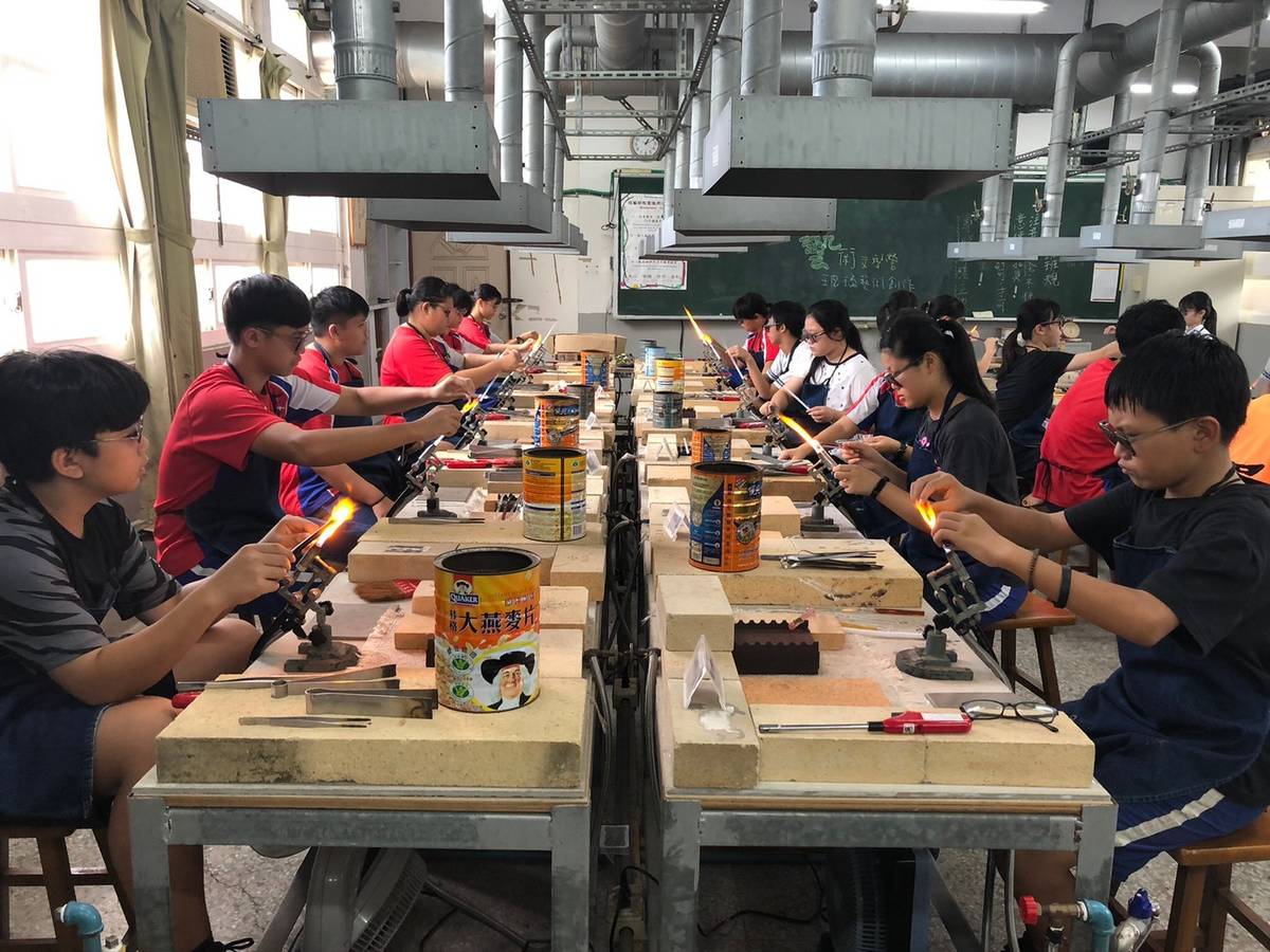 新竹市富禮國,是全國唯一辦理玻璃技藝化工職群課程的學校,更獲得第七屆「教育部藝術教育貢獻獎」全國績優學校肯定。玻璃化工課程最大的挑戰,就是要在高達800度的高溫烈焰下燒製玻璃作品。