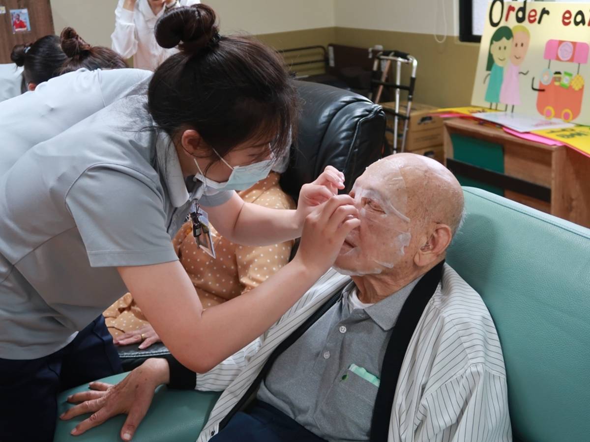 為此,護理系二技師生共同設計一系列舒適課程,包括穴道精油按摩、足部護理、面部保養等,黃薇芯同學說,這些課程不只針對失智長輩,也包括他們的家屬,放鬆身心之餘,也能舒緩照顧時的壓力。