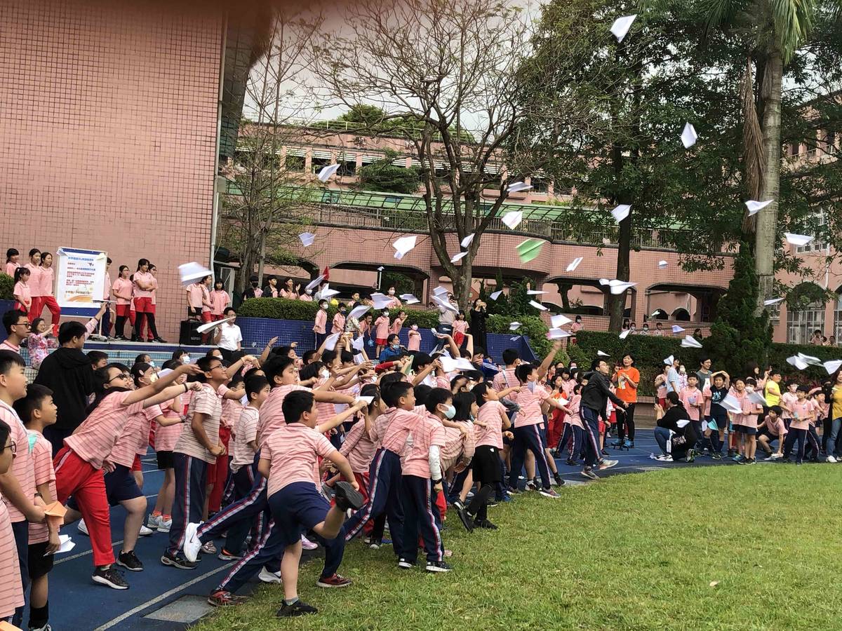 歡慶世界閱讀日 北市修德國小百人齊發文學紙飛機