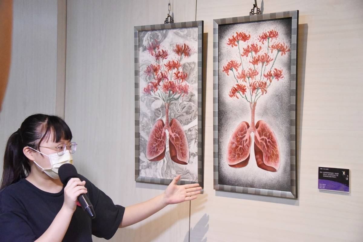 展出作品包含水彩、油畫、陶藝、電腦繪圖、複合媒材與數位媒體等,學生鍾佳頤的水墨創作《惡之必要》,以人類心臟長出彼岸花的意象,詮釋人類在經濟與環境中的取捨,無論如何選擇,最終都將對人類和環境造成無法挽回的傷害。